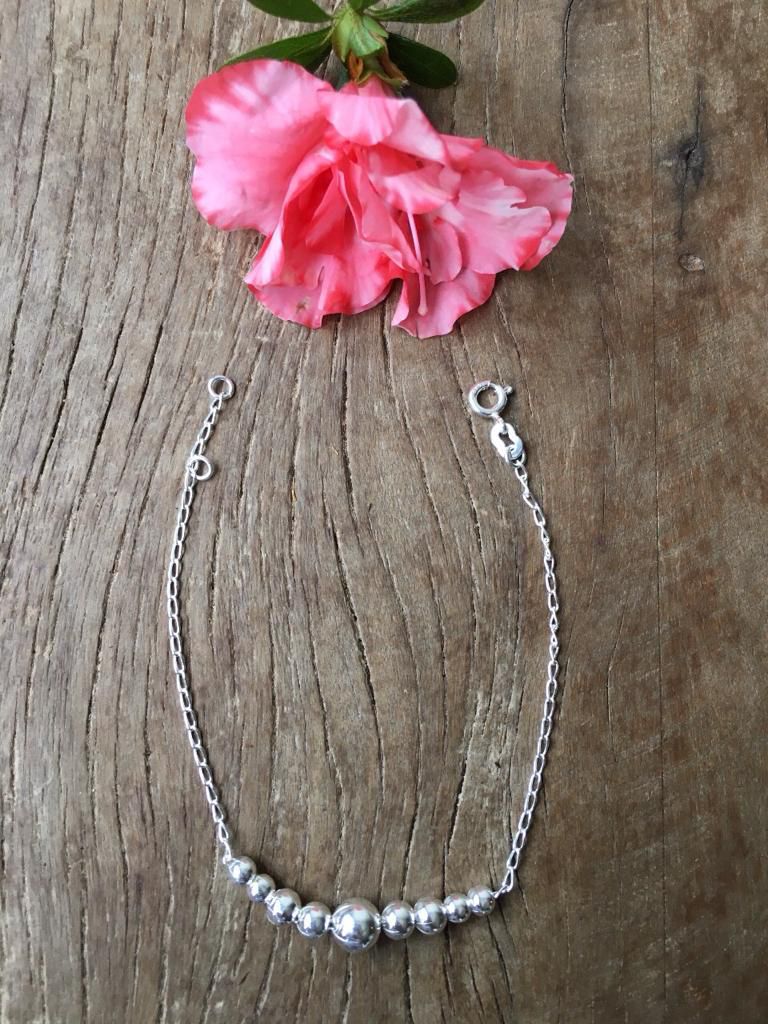 Pulseira Com Bolas Centrais - Prata 925 - 19 cm